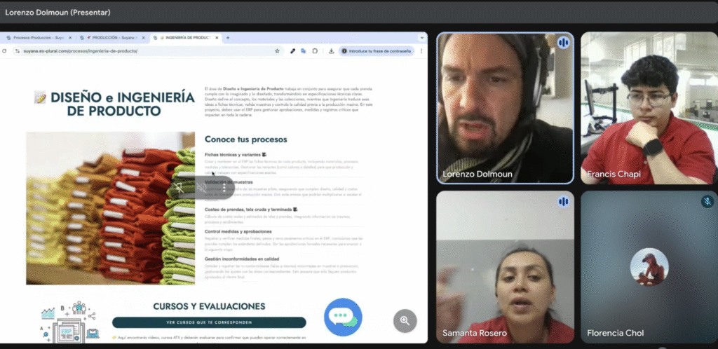 La jornada continuó con dos encuentros fundamentales. Por un lado, con Esteban, jefe de producción. Por otro, con Andrea Nieto, líder de los módulos de confección. En ambos casos, el mensaje fue directo y claro: el sistema ya está activo, y el rol de cada uno de ellos es decisivo para que el equipo lo adopte.